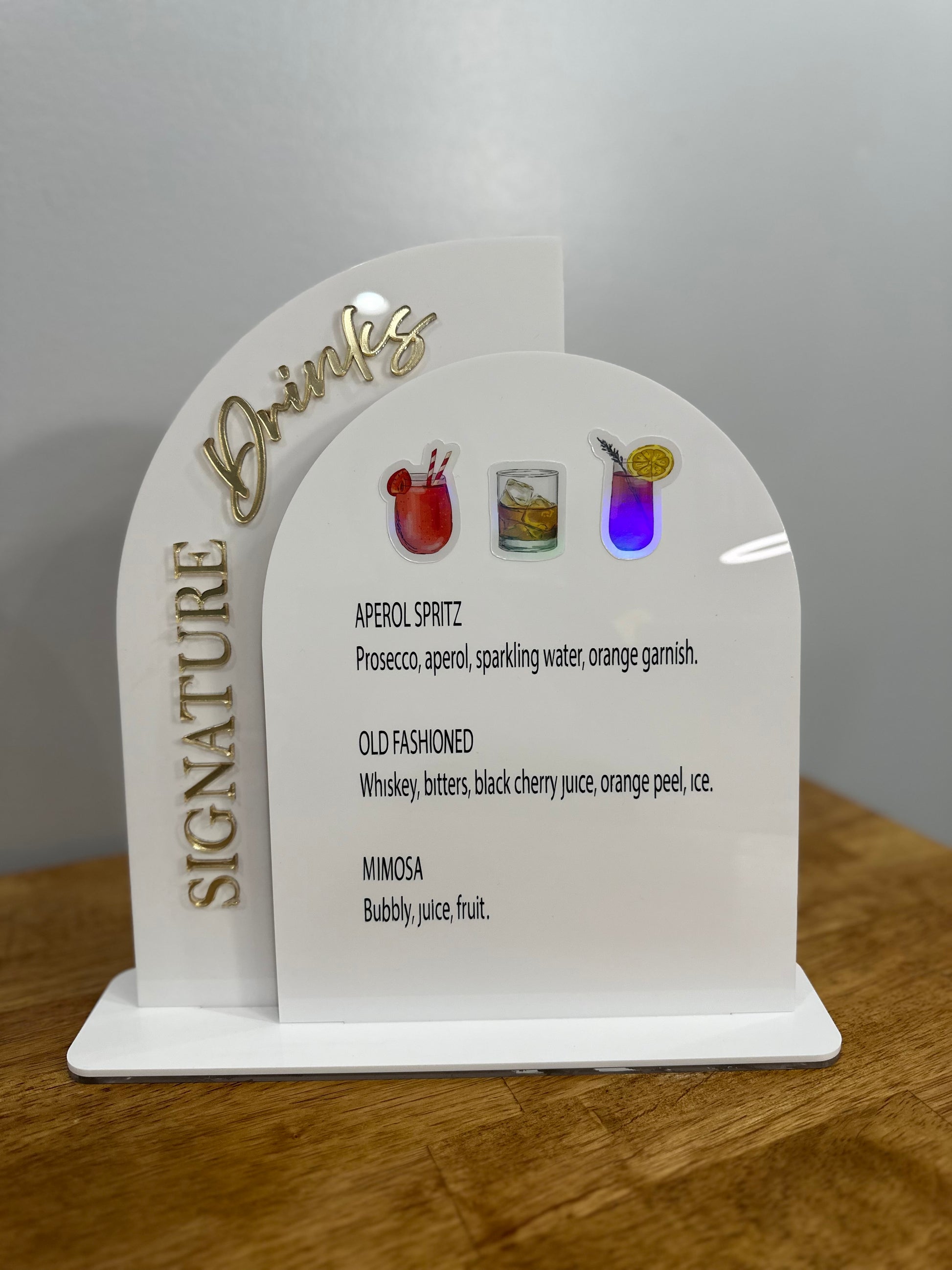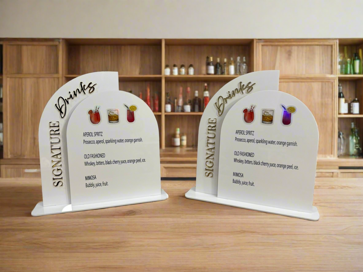 ✅ Select your quantity, lettering color, layer acrylic, accent color, and signature drinks.
